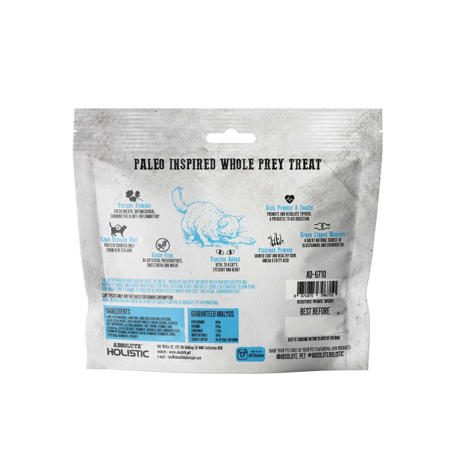 Absolute Holistic Air Dried recipes are nutrient-dense and highly digestible for cats, offering a safe and shelf-stable alternative to raw food. Every recipe begins with 93% premium-quality New Zealand sourced meats and organs with the addition of green-lipped mussels for joint-supporting supplements and plenty of essential vitamins and minerals. Air drying minimises damage to the sensitive proteins, nutrients, enzymes and vitamins, so the raw nutritional values are preserved.