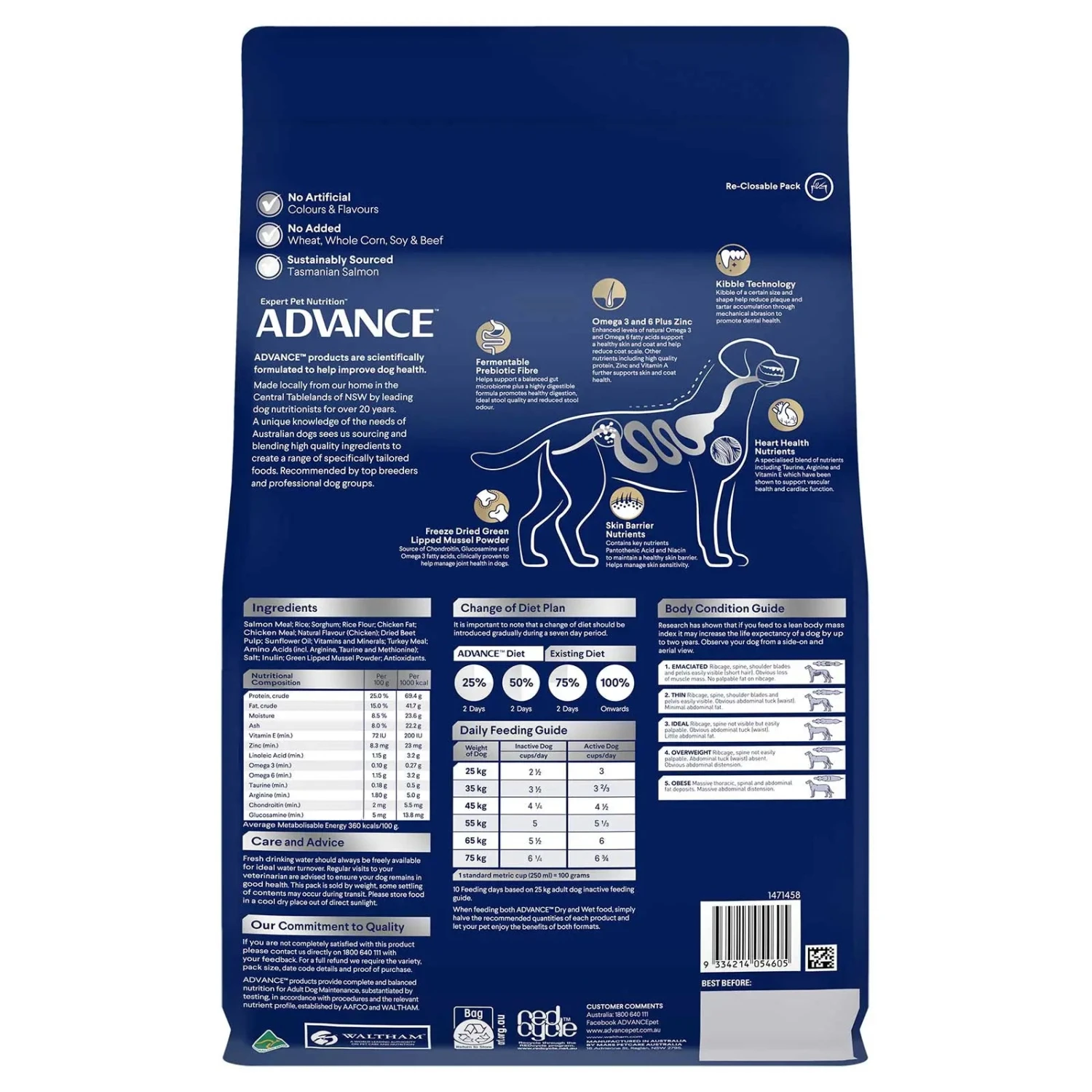 Ingredients: Salmon Meal; Rice; Sorghum; Rice Flour; Chicken Fat; Chicken Meal; Natural Flavour (Chicken); Dried Beet Pulp; Sunflower Oil; Vitamins and Minerals; Turkey Meal; Amino Acids (incl. Arginine, Taurine and Methionine); Salt; Inulin; Green Lipped Mussel Powder; Antioxidants.