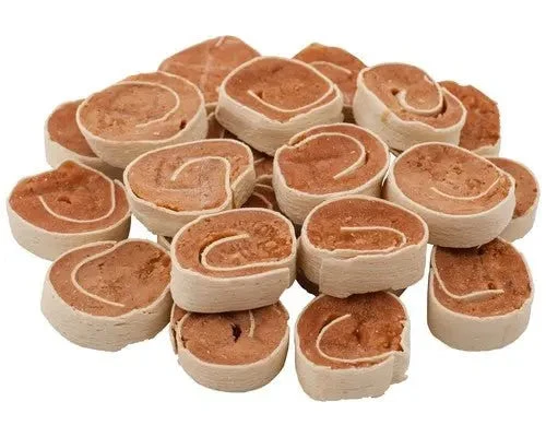 A blend of 60% white fish & 40% chicken, wrapped in cod skin that is rich in omega 3 & 6 oils and tastes fantastic. Perfect as an individual treat or training rewards.Â