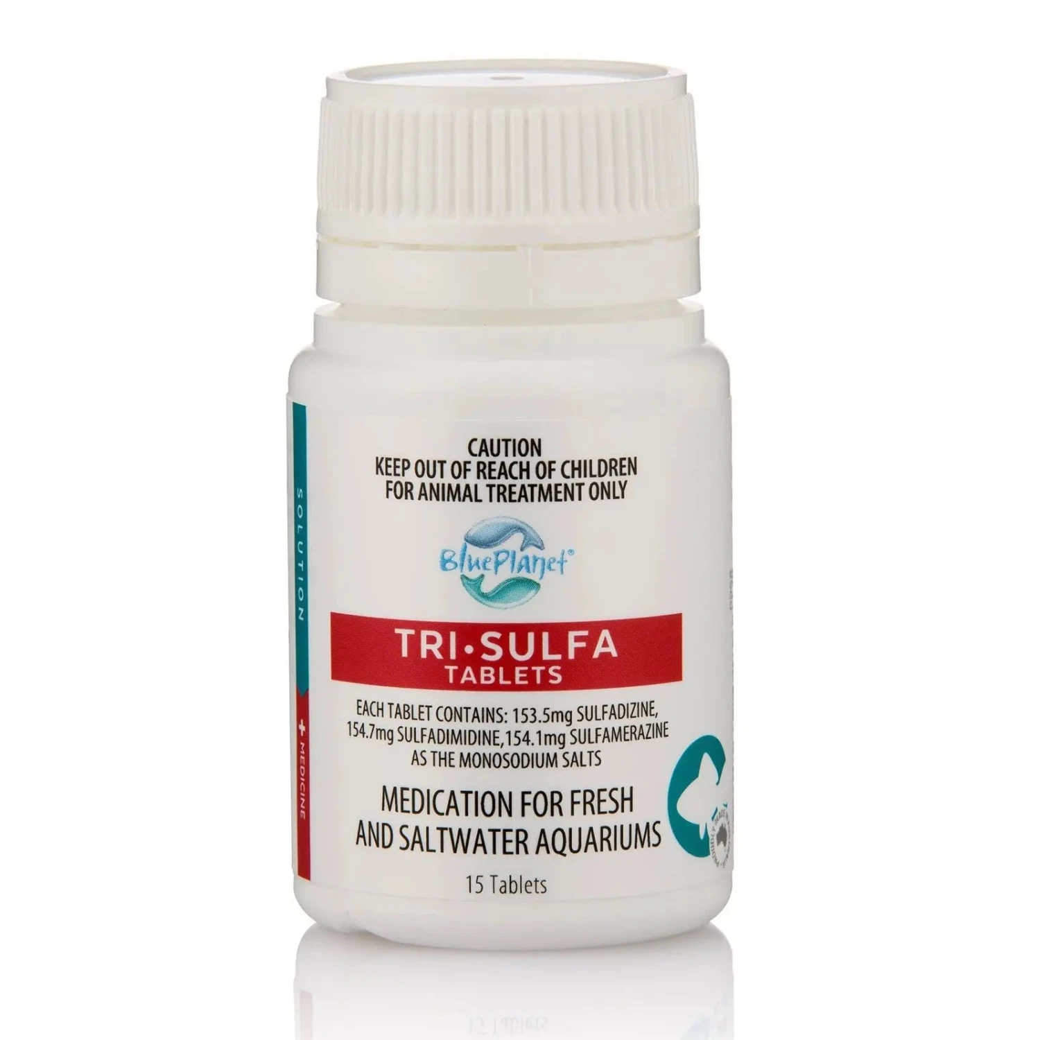 Tri Sulfa is a broad spectrum treatment that aids in the control of: Whitespot (Ichthyopthirius multifilis), Mouth and Body fungus (Columnaris spp), Tail Rot and other external bacterial diseases in fresh and saltwater fish.
