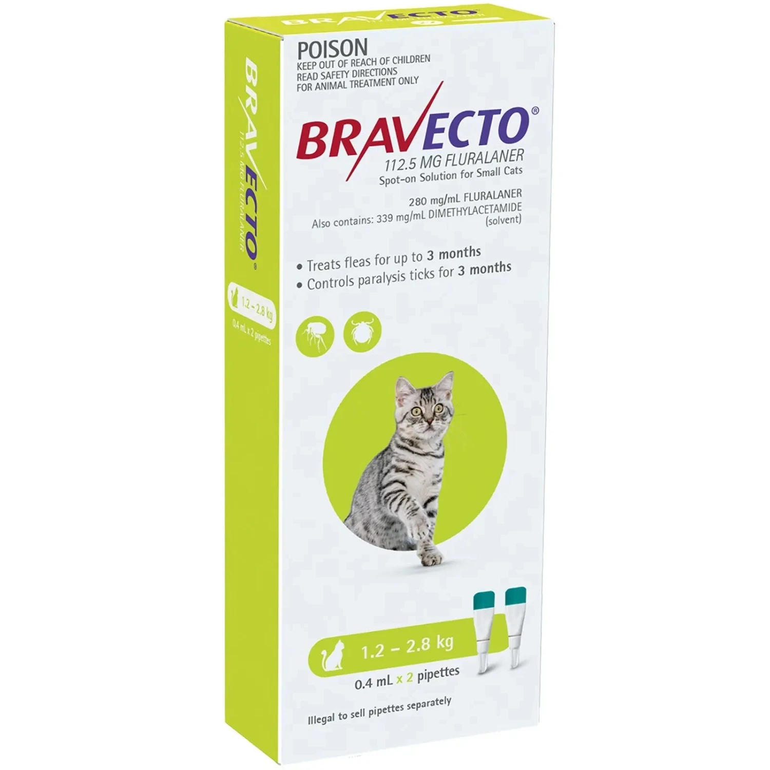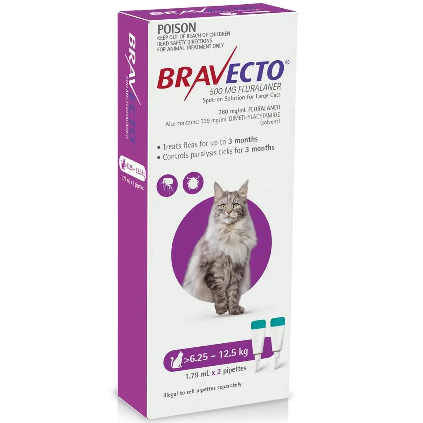Bravecto is a 3 monthly flea and tick treatment for cats! It is an easy topical/ spot-on application that takes away the stress of ensuring your cat is safe from those external nasties.