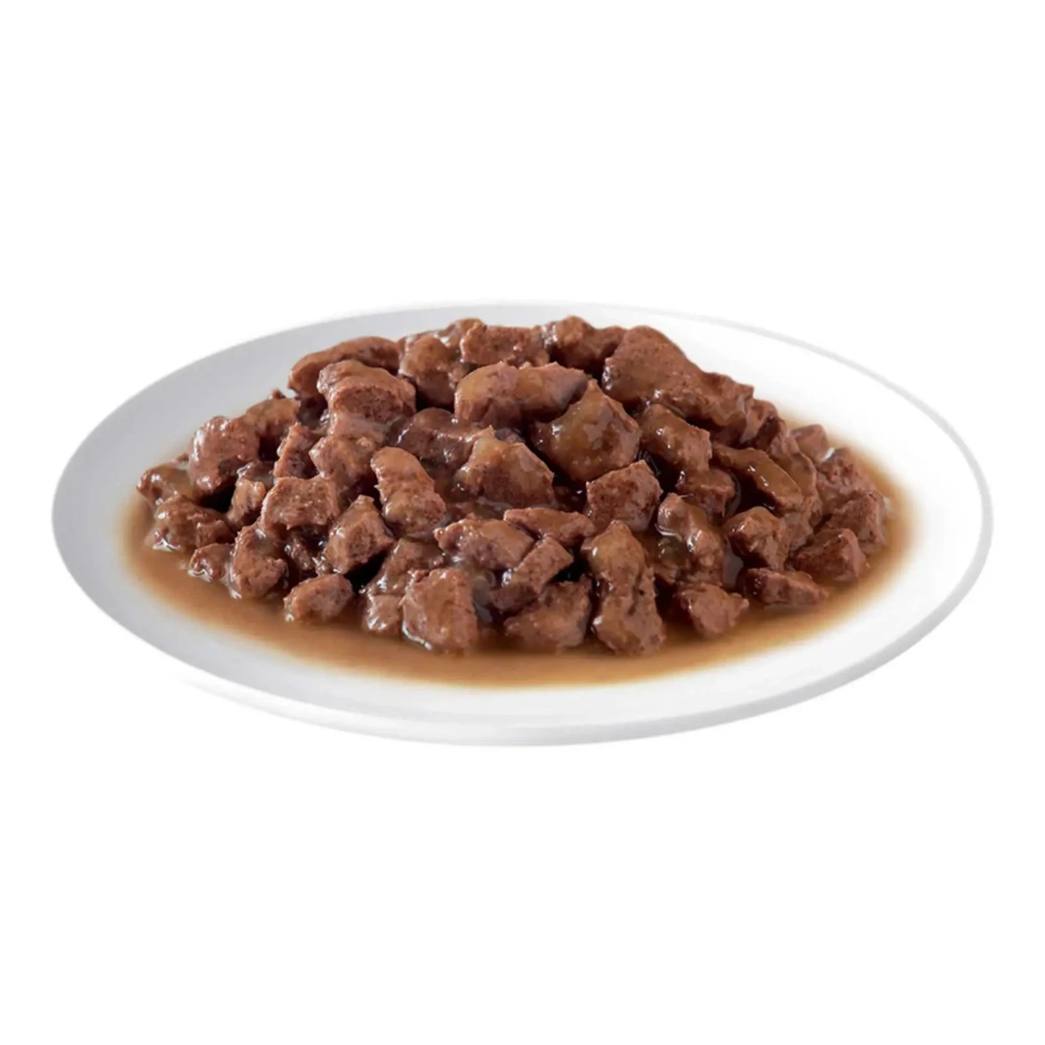 Ingredients: Meat and fish selected from chicken and/or tuna and/or salmon and/or beef, gelling agents, binder (derived from beef and/or sheep and/or pork and/or cereal); flavours, vitamins & minerals, colours, taurine.