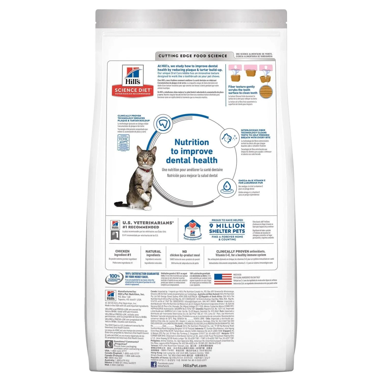 Good dental health for cats is vital to their overall health and wellbeing. Hill’s Science Diet Oral Care dry cat food provides precisely balanced nutrition to improve dental health in your grown cat using a clinically proven kibble technology. This cat food made with natural ingredients uses an interlocking fibre technology to scrub and clean cat teeth, freshening breath with every bite. Plus, because every cat wants healthy fur, omega-6s and vitamin E are added to nourish the skin and coat.