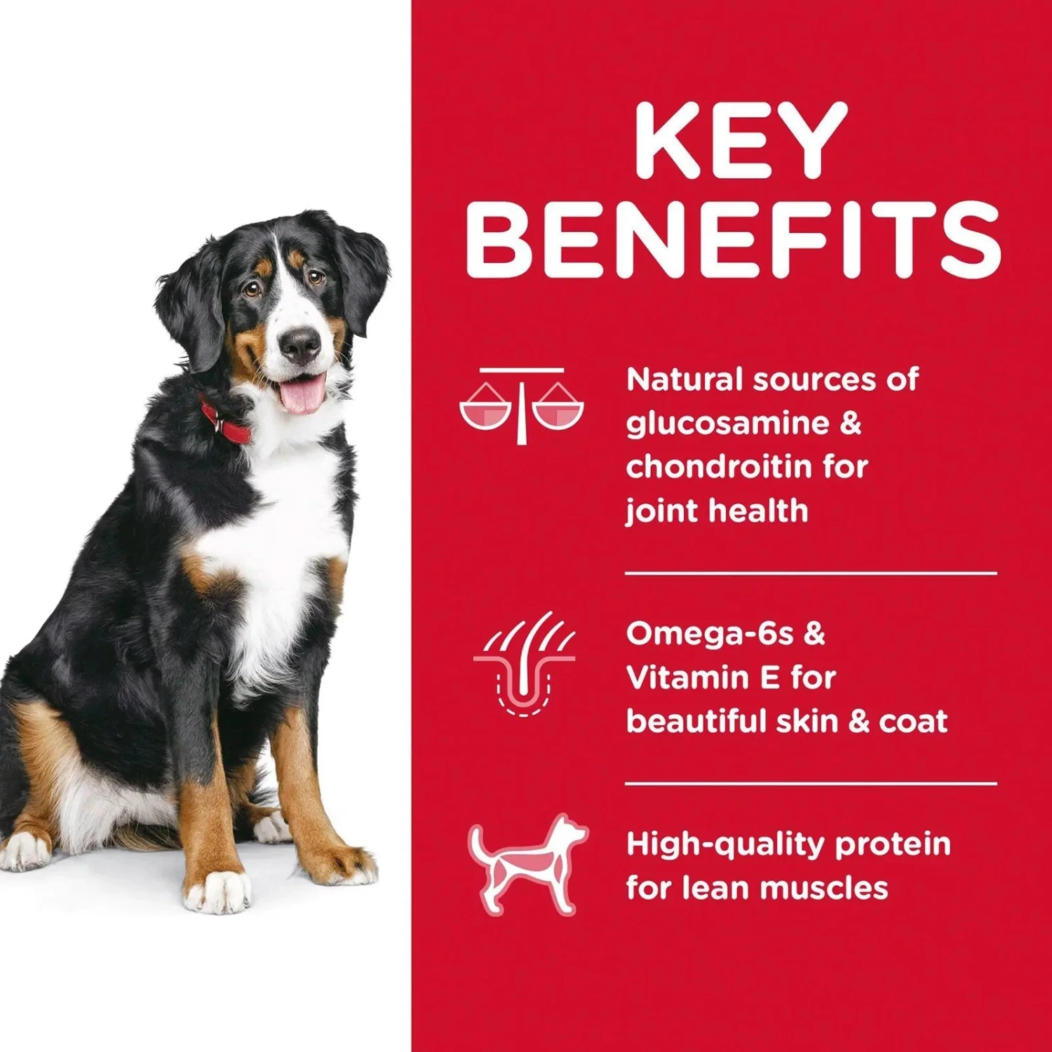 Big dogs have their own set of nutrition needs, so Hill’s Science Diet Large Breed adult dog food is specially formulated to fuel the energy needs of large breed dogs during their prime, while offering a savory lamb flavour . Made with high-quality, easy-to digest-ingredients, this food for fully grown large dogs supports the building of lean muscle with high-quality protein, as well as glucosamine and chondroitin for healthy joints & mobility. A balanced blend of omega-6s and vitamin E nourishes your dog’s skin for a healthy, shiny coat.