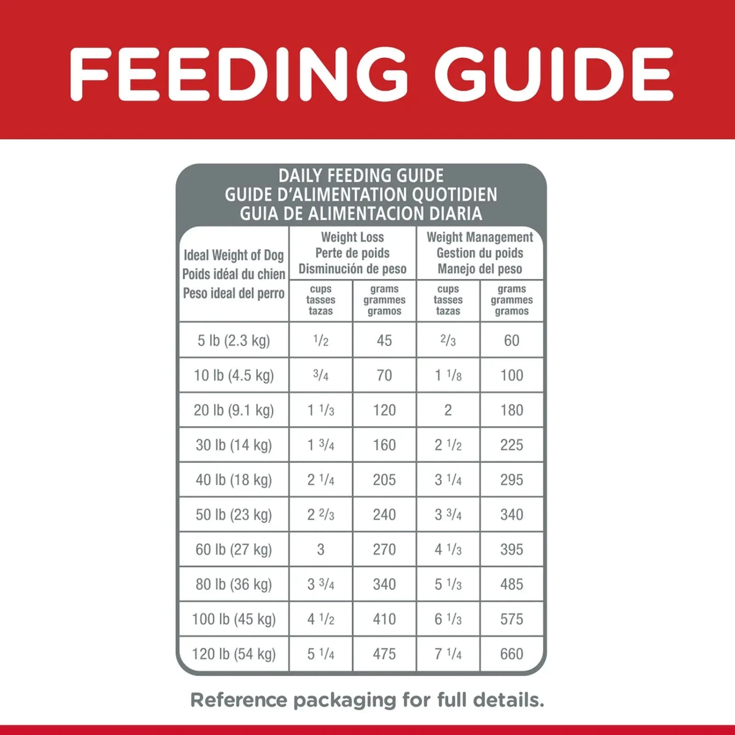 - Adult dog food with 18% fewer calories vs. Science Diet Adult