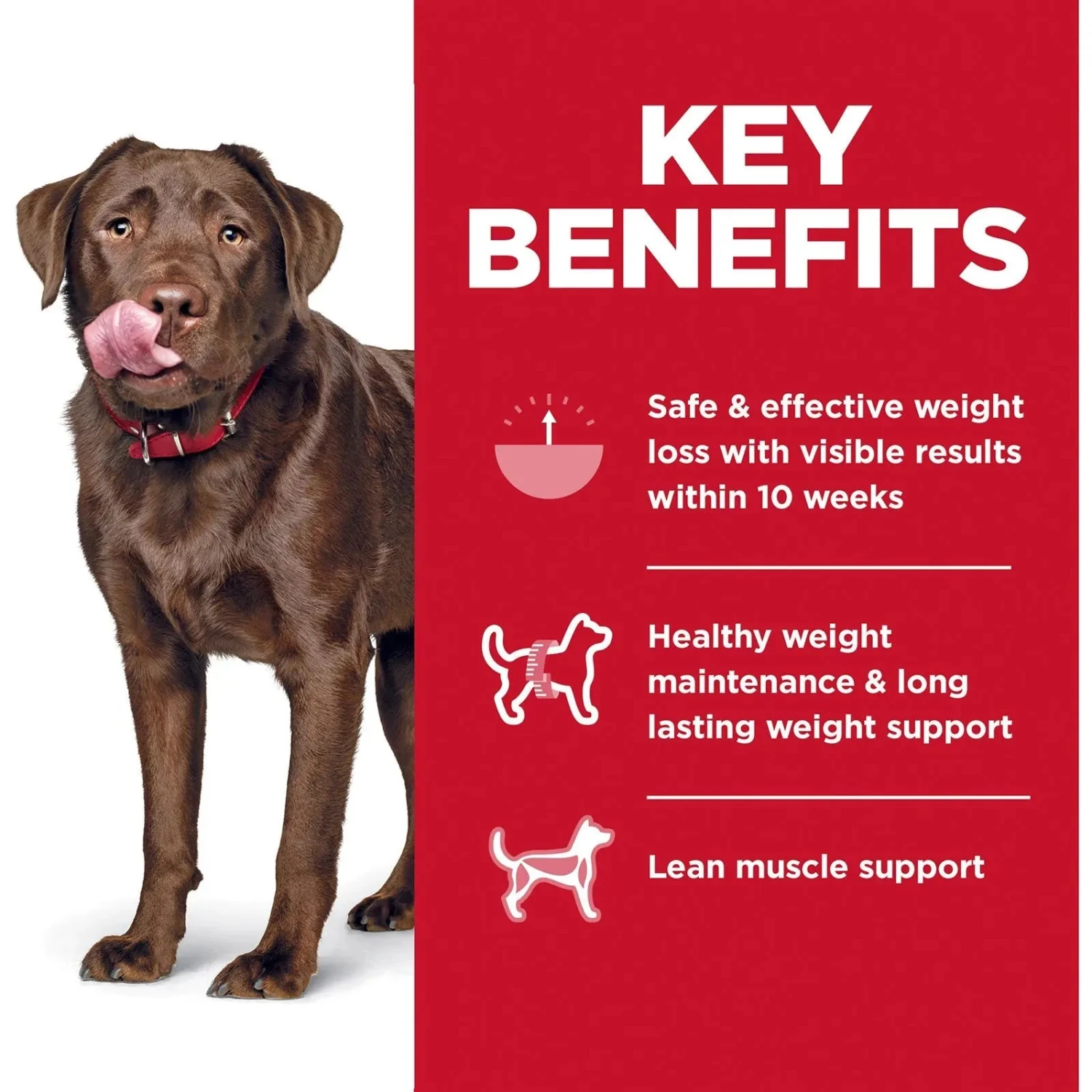 - Large-breed dog food clinically proven for weight management