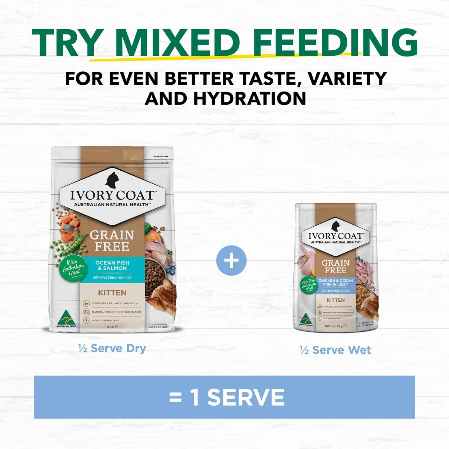 Kittens have very specific nutritional requirements, and to deliver the best in Australian Natural Health, Ivory Coat’s Grain Free Kitten range offers a variety of delicious flavours they love. Their Australian Made range of wet kitten food has been formulated to be naturally nutritious and grain free to give them everything they need and nothing they don’t. Wet food provides crucial hydration delivered in a natural way kittens love.