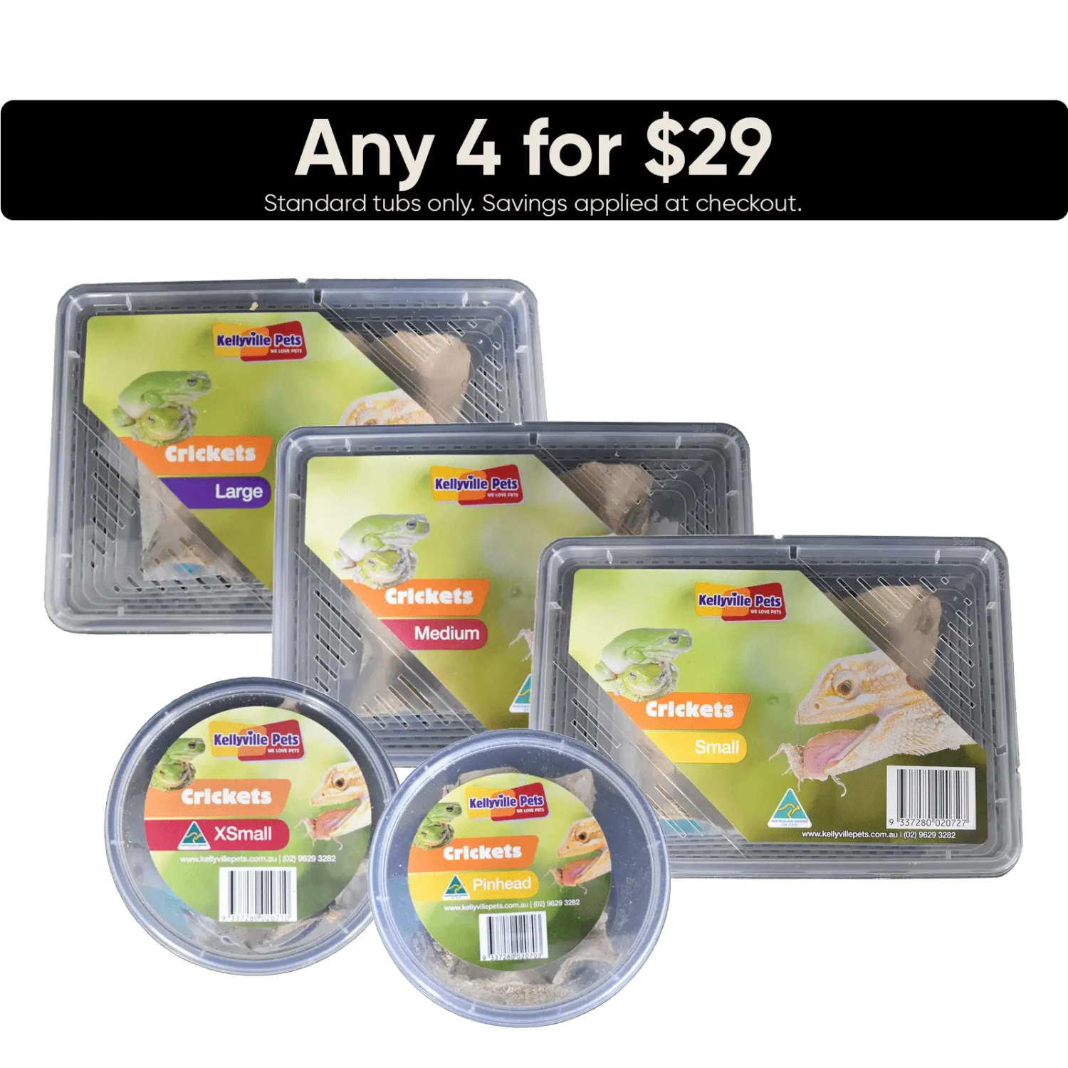 To keep crickets alive and healthy we recommend the use of Aqua Load – this product is a Vitamin C and Calcium fortified hydration cube which provides insects with a clean and safe water source. Gut Load can be offered as a food source which will also improve their nutritional content for your pet.