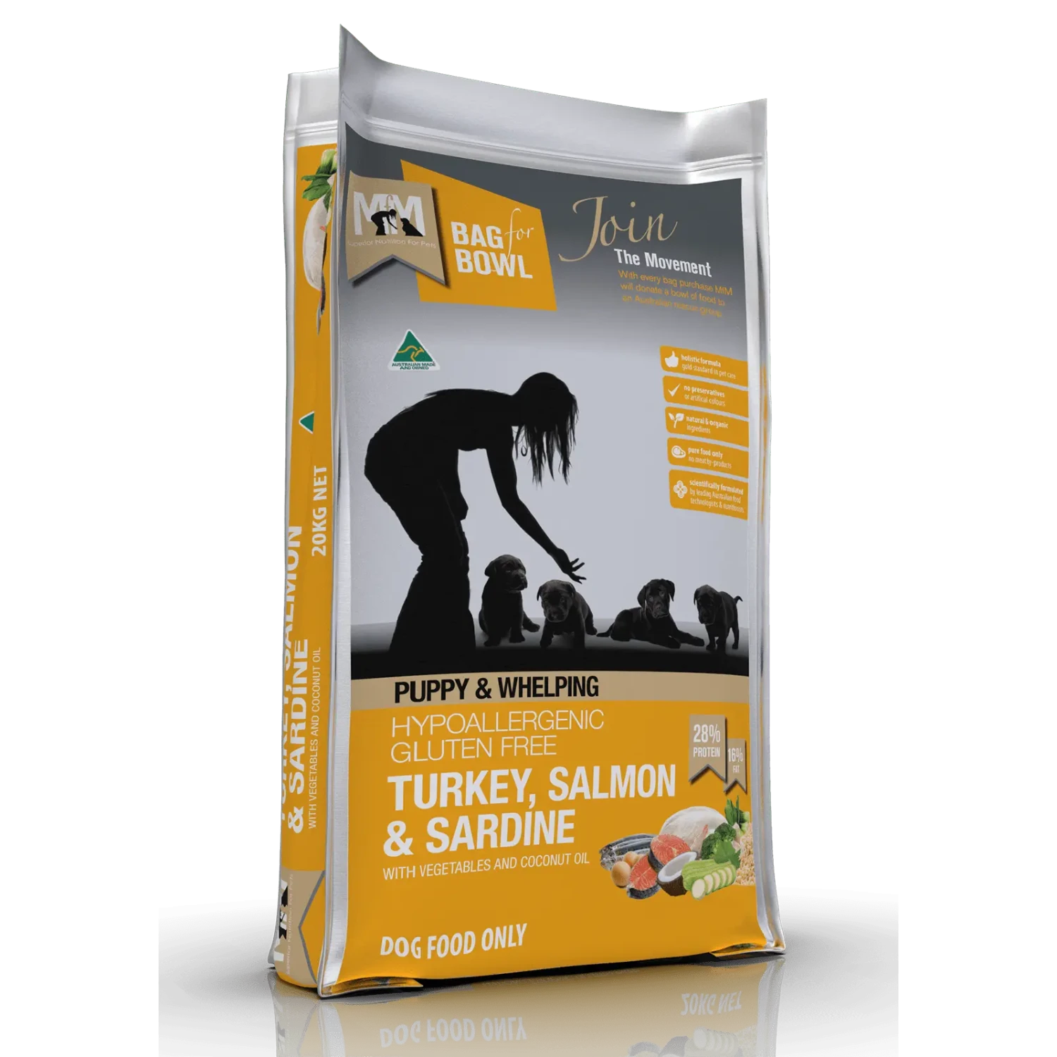 Meals for Mutts (MFM) Puppy Turkey & Salmon provides all of the nutrients that growing pups need. Puppies require certain amounts of Omega 3, 6 & 9 to assist with brain function, cardiovascular health, teeth, nails, skin & coat. No artificial preservatives or colours, and only uses natural ingredients.