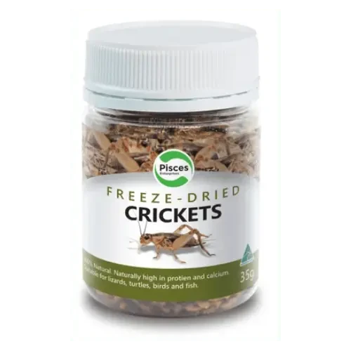 Pisces freeze-dried crickets are a 100% natural source of protein, calcium, vitamins and minerals, suitable for lizards, turtles, birds and fish.