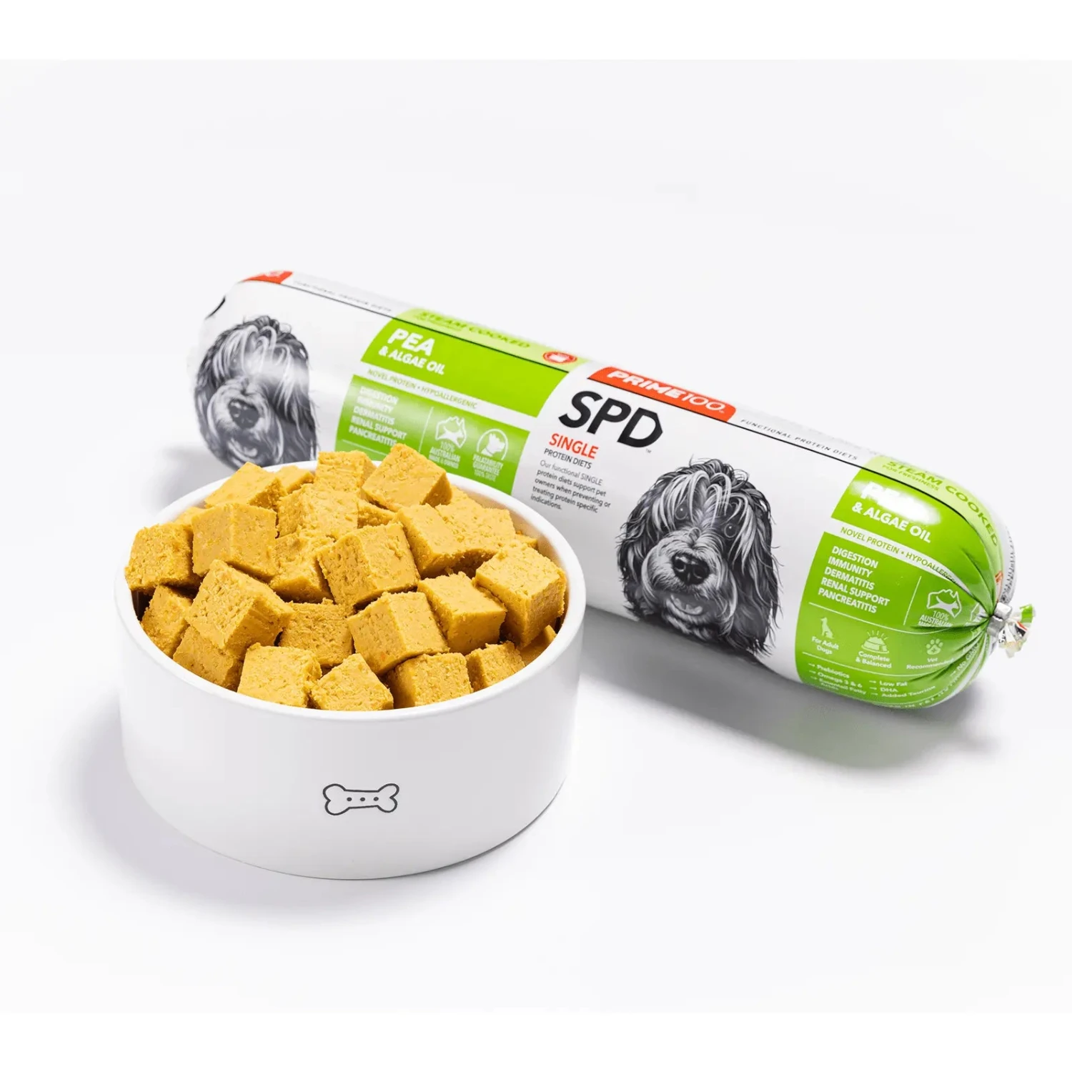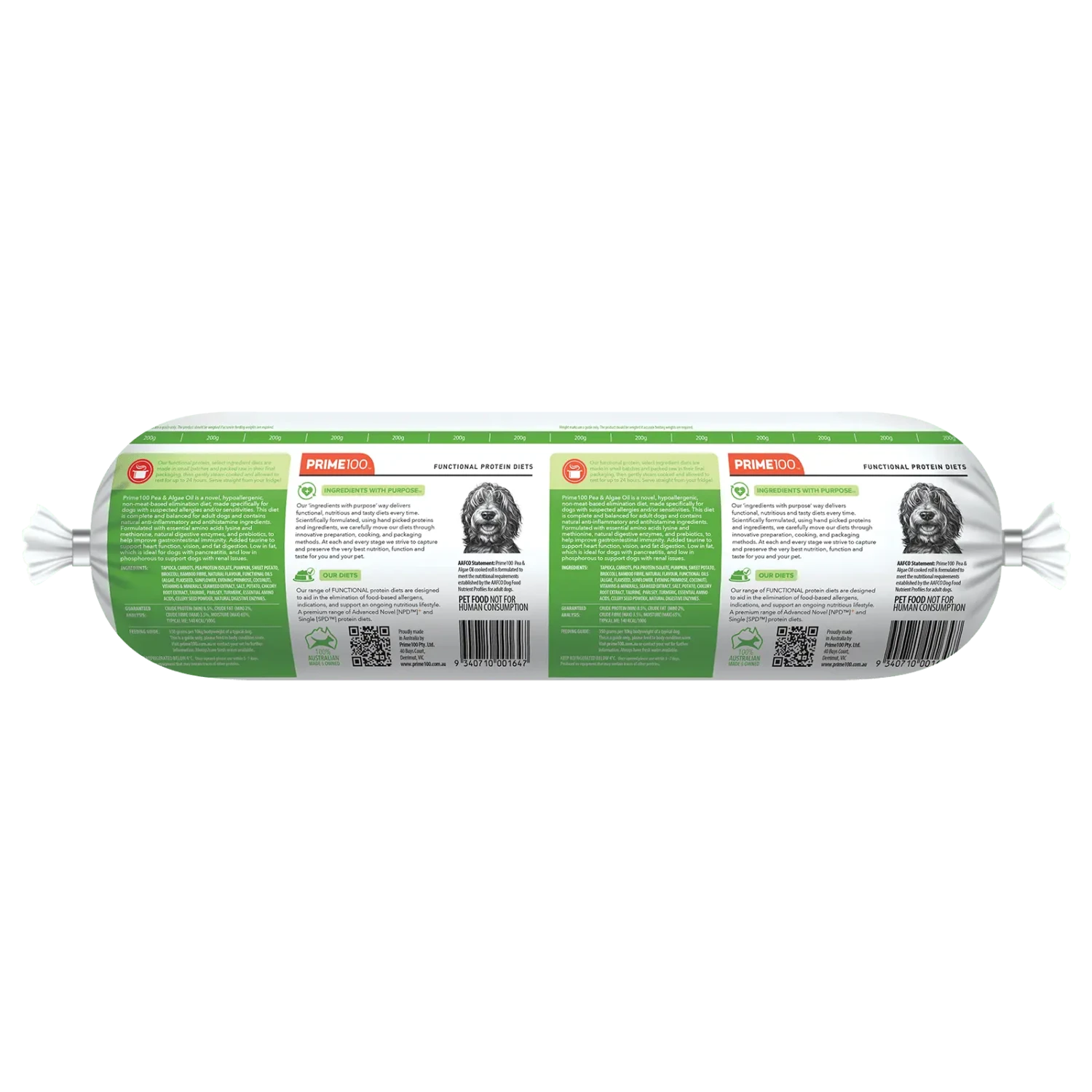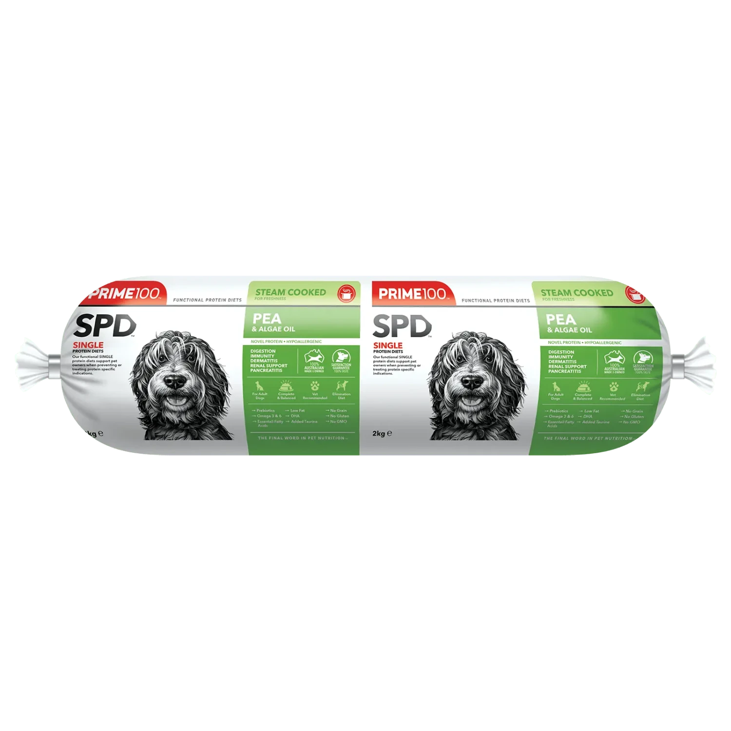 Prime100 Pea & Algae Oil is a novel, hypoallergenic, non-meat-based elimination diet, made specifically for dogs with suspected allergies and/or sensitivities. This diet is complete and balanced for adult dogs and contains natural anti-inflammatory and antihistamine ingredients. Formulated with essential amino acids lysine and methionine, natural digestive enzymes, and prebiotics, to help improve gastrointestinal immunity. Added taurine to support heart function, vision, and fat digestion. Low in fat, which is ideal for dogs with pancreatitis, and low in phosphorous to support dogs with renal issues.