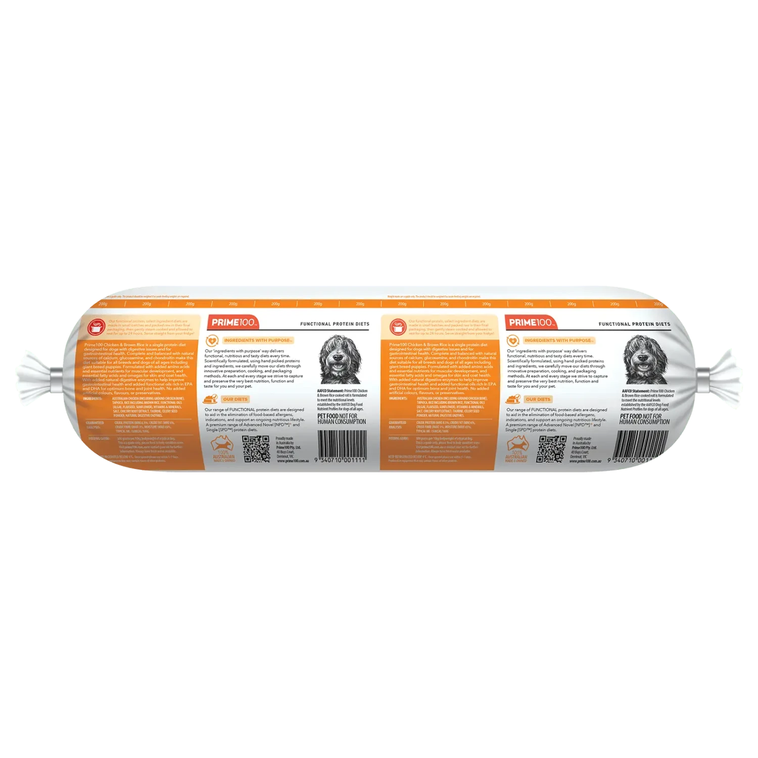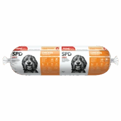 Single Protein Diet* SPD™ Chicken and Brown Rice roll is made with a single meat protein. This diet contains 100% Australian Chicken, Brown Rice, Potato, Flax Seed Oil, Psyllium Husk, Sunflower Oil, Evening Primrose Oil, Salt and Inulin to provide a rich single source of protein which can assist dogs with food sensitivities. Having a Single Protein Diet for dogs is the most ideal way to feed your dogs. Mixed proteins can cause allergies such as Dermatitis and food intolerance. Brown Rice is a novel ingredient that contains natural fibre and anti-oxidants that can assist the dog’s digestive system and functioning of cardiovascular system. The Chicken & Brown Rice is specifically designed for the larger dogs due to its natural source of calcium.