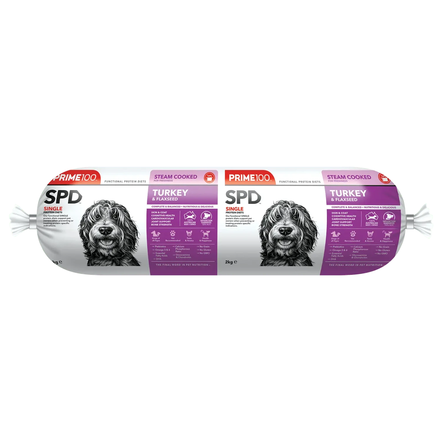 Whole turkey (meat and carcass) contains essential dietary elements including calcium, glucosamine, chondroitin, and EFAs – this means Turkey is an appropriate single protein diet for large dog breeds too.