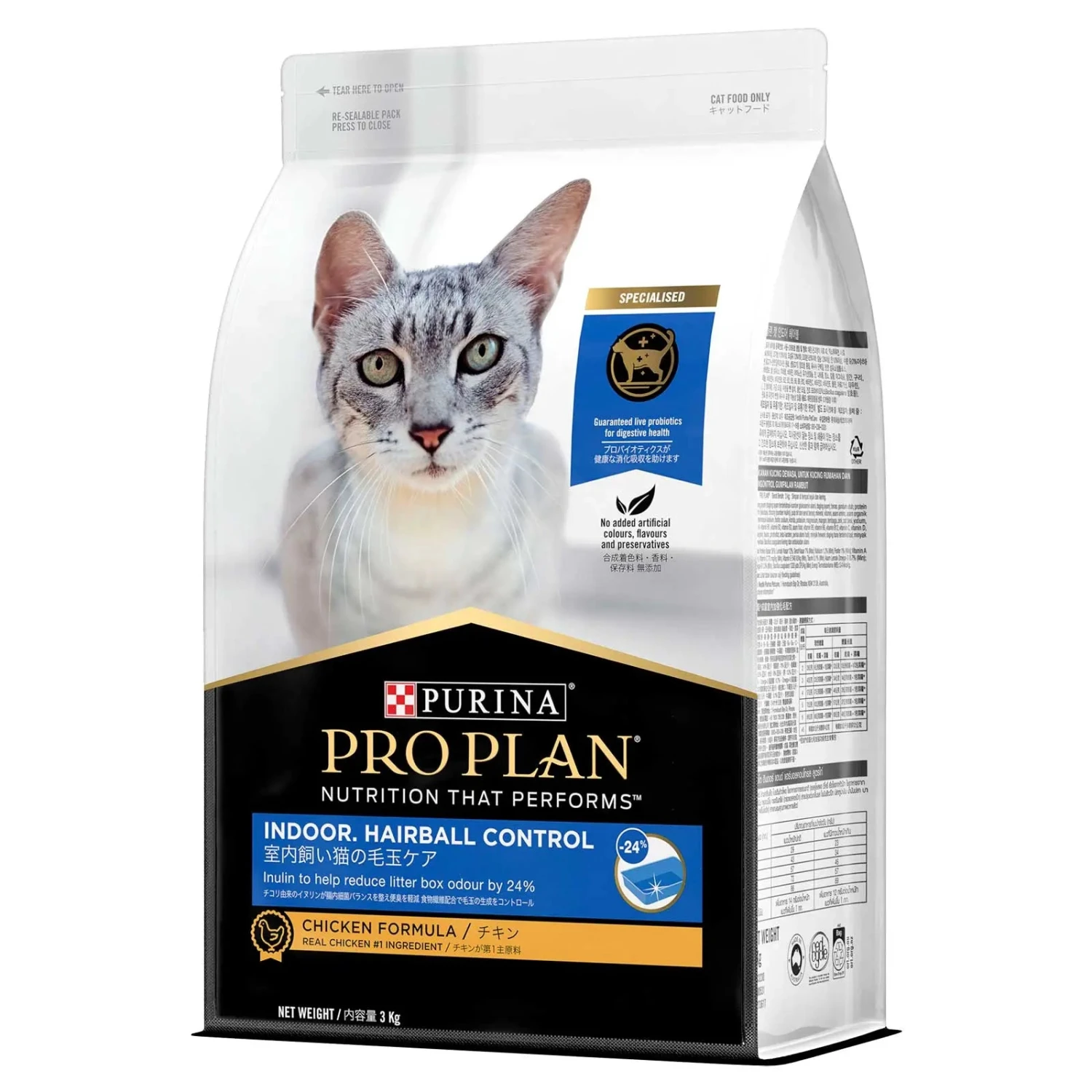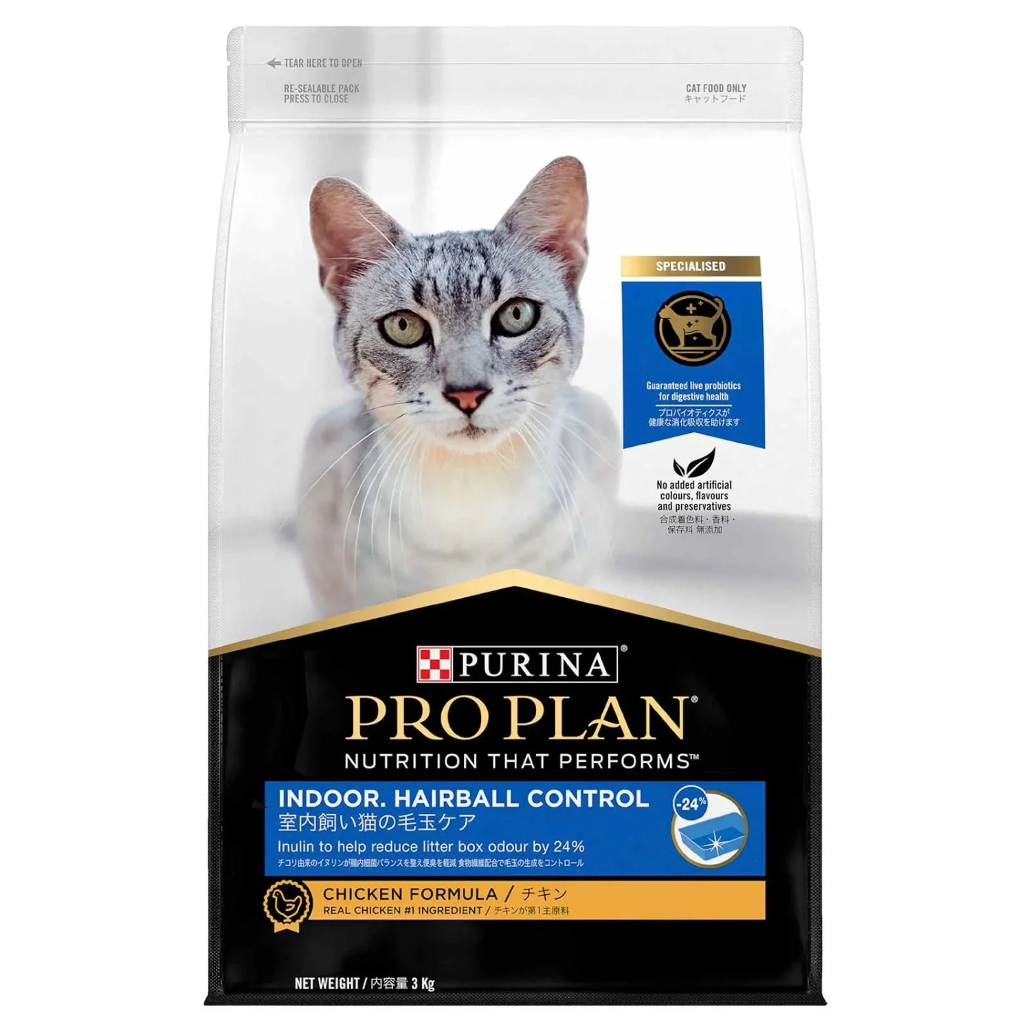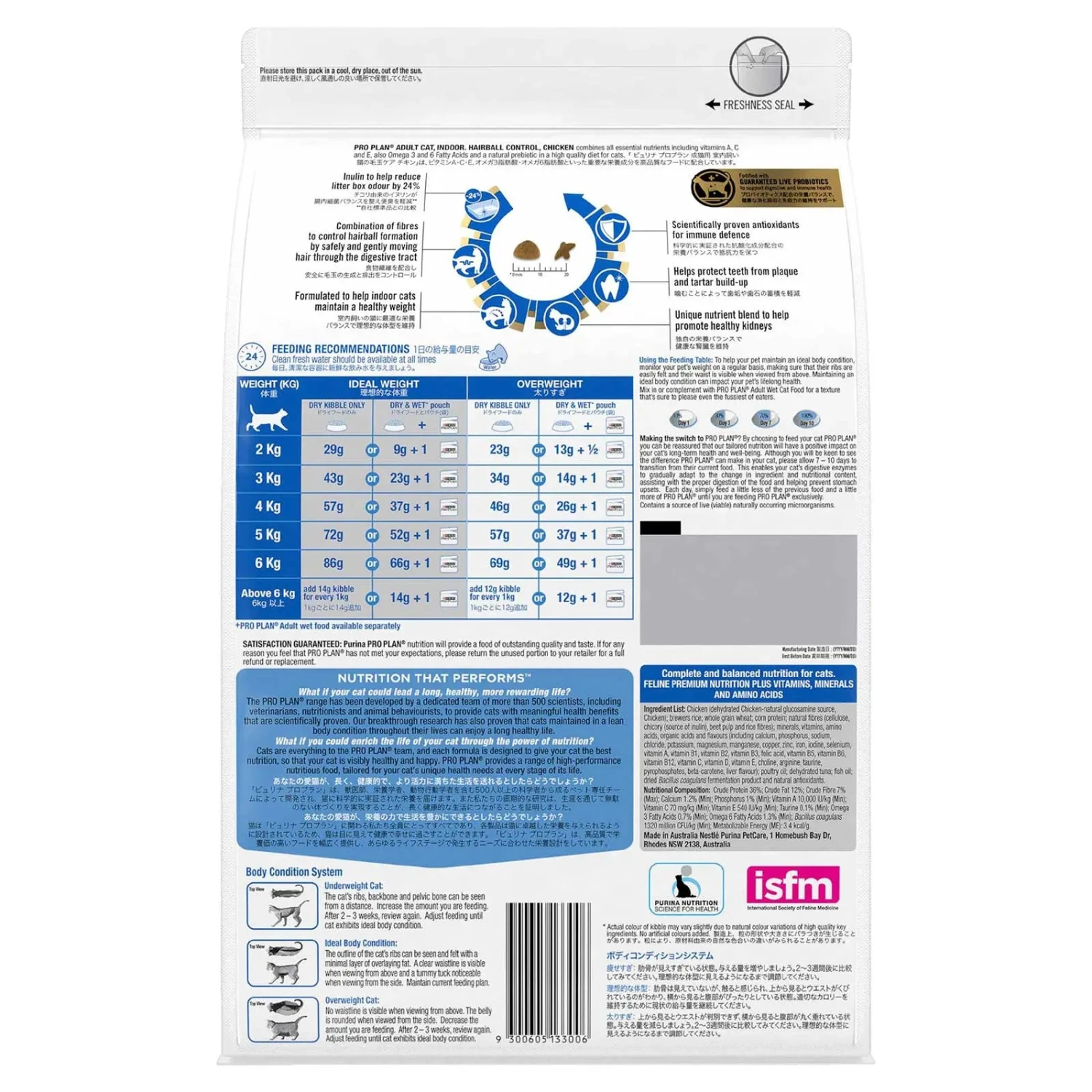 Pro Plan Adult Cat, Indoor & Hairball Control, Chicken, combines all essential nutrients including vitamins A, C and E, also Omega 3 and 6 Fatty Acids and a natural prebiotic in a high quality diet for cats.