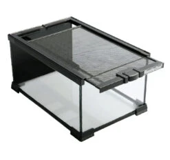The Mini-T2 features raised feet to allow placement of a heat mat and enable the enclosures to be stacked. The superfine steel mesh lid provides added security and ventilation.
