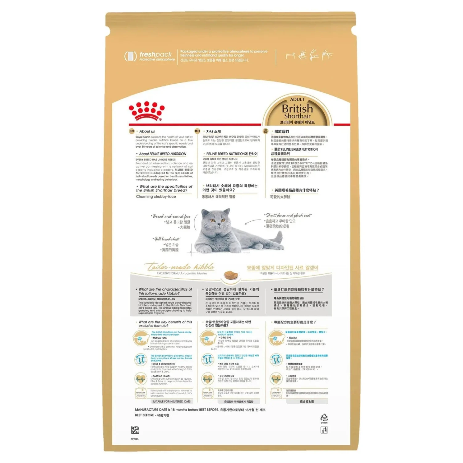 Royal Canin British Shorthair Adult is specially formulated with all the nutritional needs of your Adult British Shorthair cat in mind. Due to your cat’s heavy body type, the level of protein in Royal Canin British Shorthair Adult has been specifically adapted to maintaining your cat’s muscle mass.