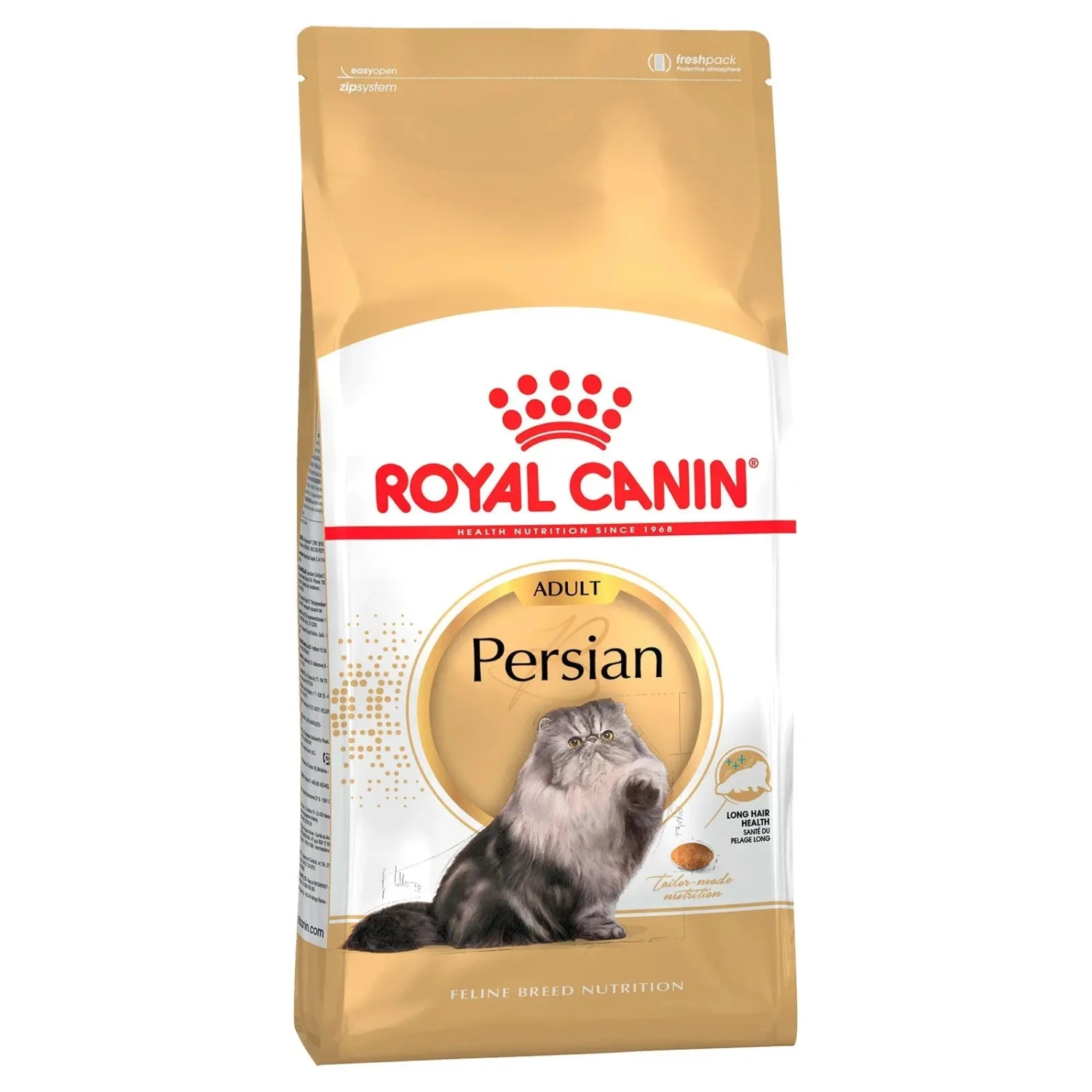 The Persian cat has the longest and densest coat of all cat breeds. That’s why Royal Canin Persian Adult contains an exclusive complex of nutrients to help the skin’s barrier defence role to maintain good skin and coat health. Due to their long fur, Persian cats are prone to the formation of hairballs, which can cause discomfort. However, thanks to Royal Canin Persian Adult, loose ingested hair is eliminated, hairball formation is controlled and intestinal transit is naturally stimulated through a specific blend of fibres (including psyllium rich in mucilage).