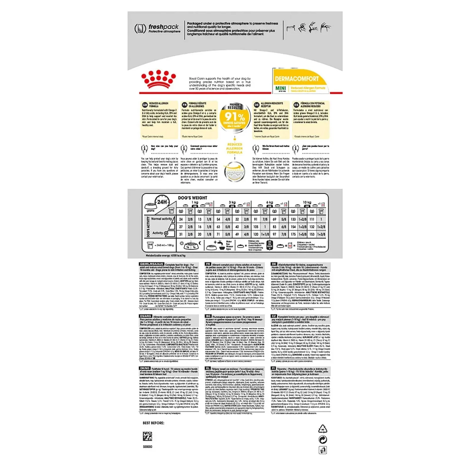 This formula is crafted to support your dog’s overall health as well as nourishing its sensitive skin. It’s enriched with the essential fatty acids Omega 3 and 6, which help to calm and protect your dog’s skin and make it less sensitive to irritation. While EPA, DHA and GLA are especially beneficial Omegas that help its coat to stay full and healthy. The Dermacomfort range is also rich in carefully selected low allergen, high-quality proteins that reduce the risk of intolerance.
