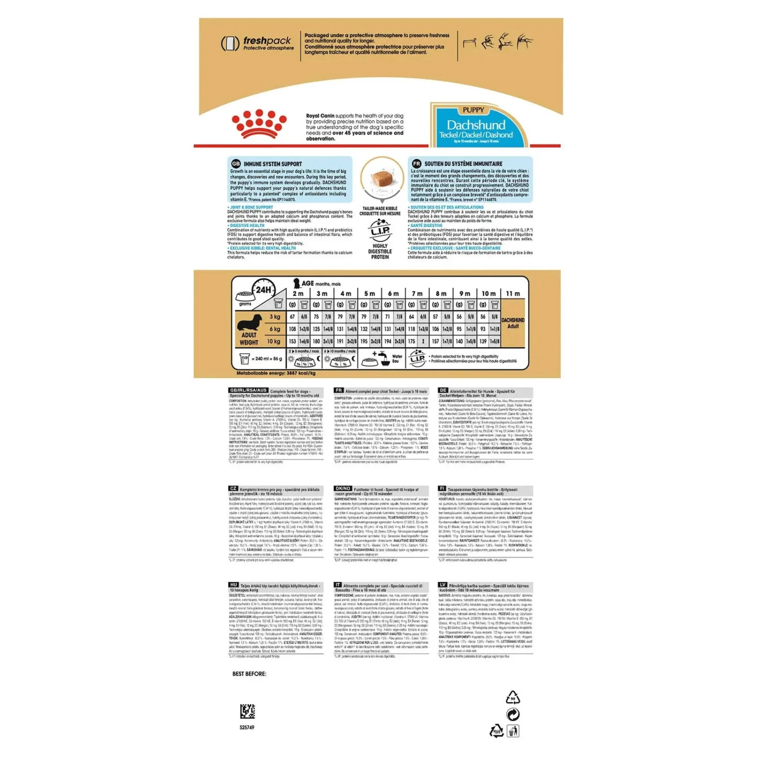 Suitable for puppies up to 10 months old, ROYAL CANIN® Dachshund Puppy is specially formulated with all the nutritional needs of your puppy in mind. During this important growth period, your puppy’s immune system develops gradually. ROYAL CANIN® Dachshund Puppy contains a complex of antioxidants – such as vitamin E – that help to support your puppy’s natural defences. Thanks to an adapted calcium and phosphorus content, Royal Canin Dachshund Puppy contributes to supporting your puppy’s bones and maintaining joint health.