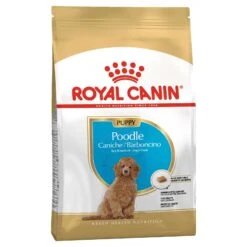 Royal Canin Poodle Junior is tailor-made to suit the unique nutritional needs of your Poodle puppy. This premium dry food is enriched with nutrients including omega fatty acids (EPA and DHA) and borage oil to support your Poodles woolly coat. The adapted protein content also helps to support continuous hair growth. The diet is formulated with an exclusive kibble shape and with calcium binders to reduce the development of tartar formation. With their developing digestive system, this junior formula contains highly digestible protein to promote a balanced intestinal flora and an exclusive antioxidant complex to support your puppys natural defences.