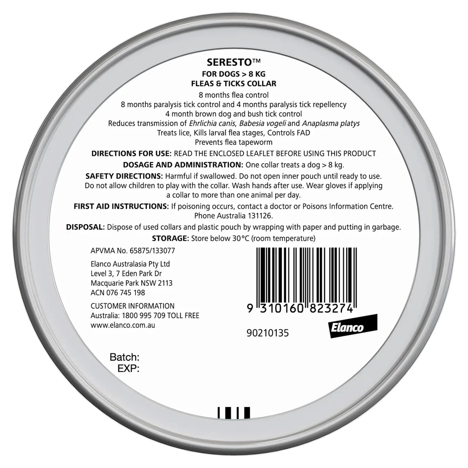 The Seresto™ collar is the longest lasting flea and paralysis tick protection for dogs and puppies, providing consistent protection for 8 months. Seresto™ is an odourless, water-resistant* collar that works by contact, so there’s no need for fleas and ticks to bite. It’s the simple way to keep your best friend protected!