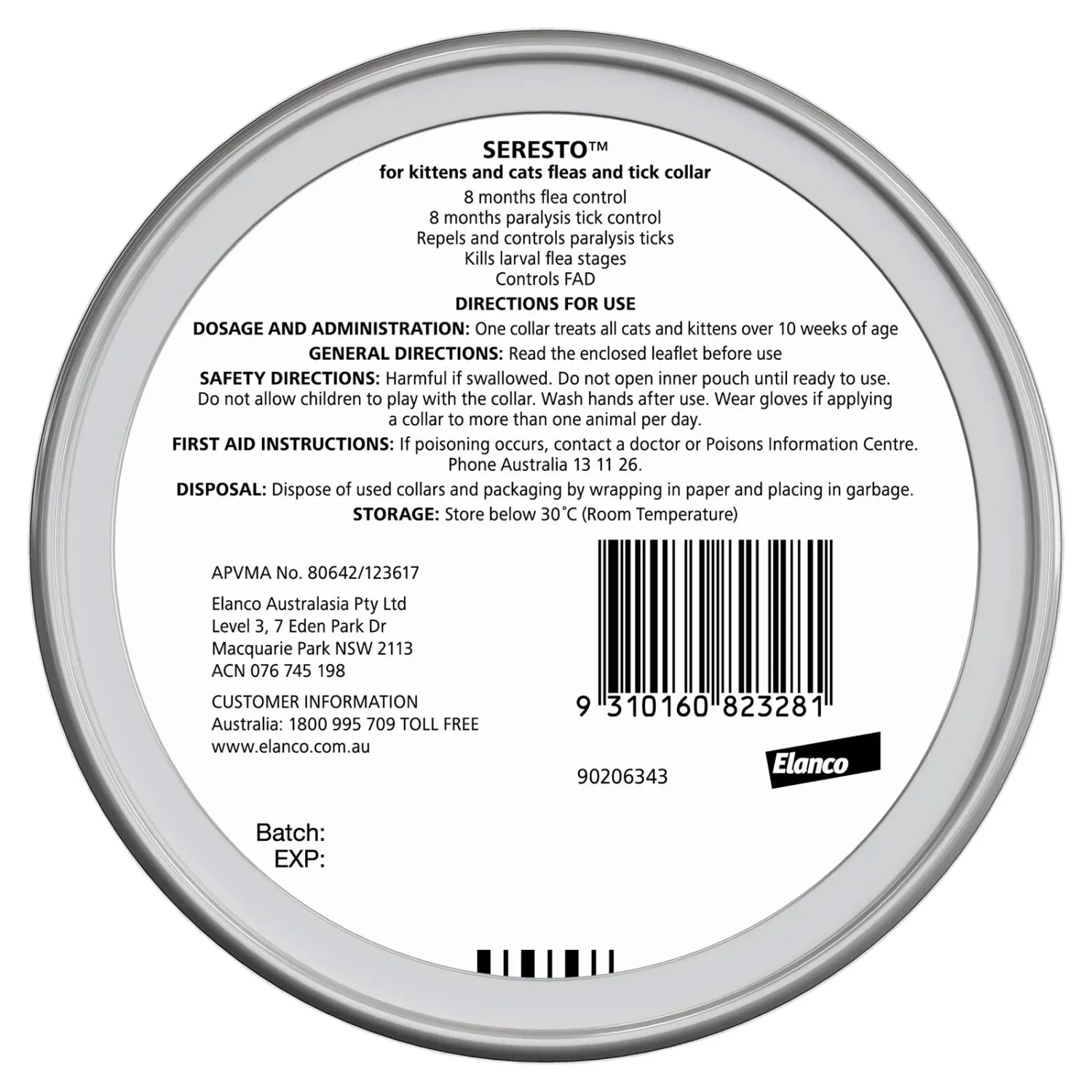 - Repels and controls paralysis ticks for 8 months