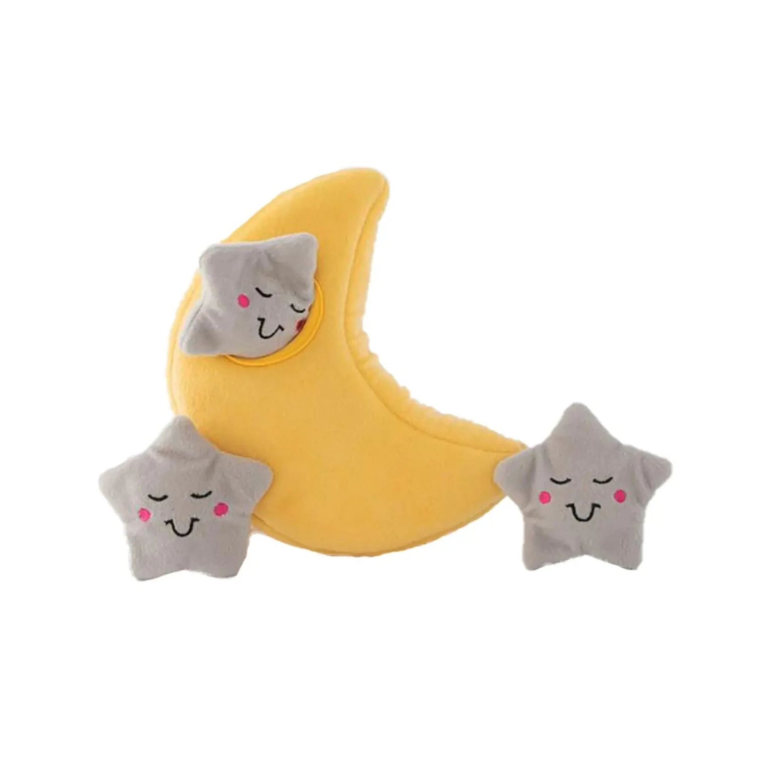 Doggo will be howlin’ with excitement when they dig into the Zippy Burrow Moon and Stars! Once your playful pup has all the bashful little stars pulled from the moon, they’ll be begging you to put them back in again and again for hours of fun! It’s the perfect interactive toy for keeping your dog busily engaged in hide-and-seek play that prevents boredom and promotes mental stimulation! This interactive hide-and-seek toy comes with 1 moon and 3 small squeaky stars.